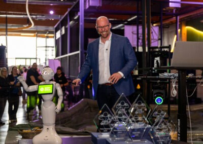 Naast de awarduitreiking bood de dag een inspirerende ontdekkingsreis langs de nieuwste innovaties en best practices voor een gezonde werkomgeving. Hoogtepunt was de eerste kennismaking met AI-supercoach Alex, die medewerkers 24/7 zal ondersteunen op het vlak van welzijn.