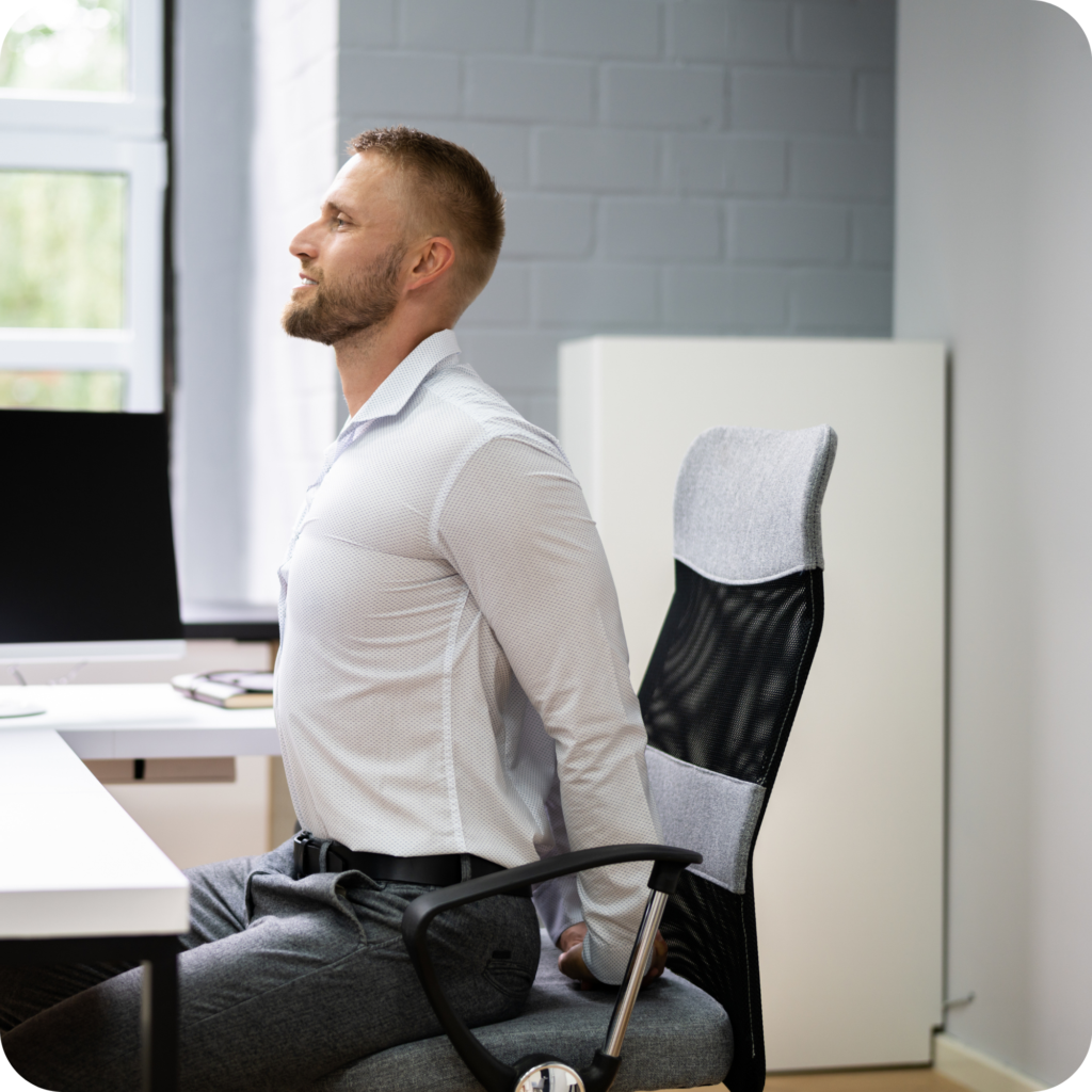 • Eenvoudige kracht- en stretchmoves die je bureau als steunpunt gebruiken