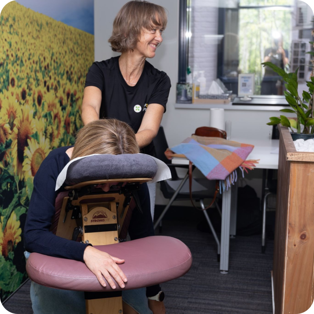 De massage gebeurt bovenop de kleding en duurt standaard 20 minuten. Dit maakt dit type van massage erg geschikt om aan te bieden in bedrijven, als deugddoende break tijdens een volle werkdag.
